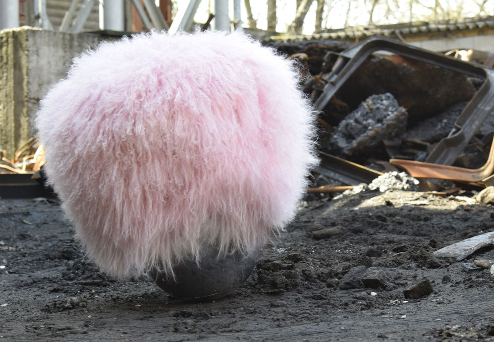 Come into the world under the sign of the balance, Toad makes the research of equilibrium its fundamental point. In unstable balance among zoomorphic forms and comics reminiscences of the '90s, Toad swings, but it always returns vertical thanks to counterweight contained in the half-spheric base bronze fused or sculpt in Saint Laurent's marble. The connection with the fashion's world, an element that is persistent in the productions of Lorenza Bozzoli, is better expressed in the top part of the pouf: the velvet version remembers an elegant female headgear inspired by Egyptian shape, the other with Mongolian fur, an amusing masculine headgear from an Anglo-Saxon taste, that stirs to every oscillation.